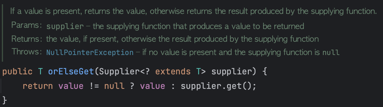 값이 null이 아니면 값을 반환하고, null이면 Supplier의 get을 호출한다.